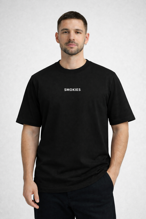 SMOKIES Black Relaxed Fit Sweatpants. COTTON ( 260 Gsm).